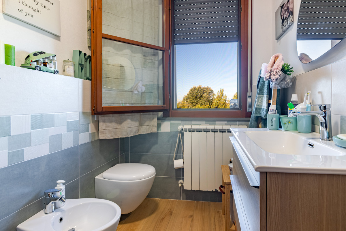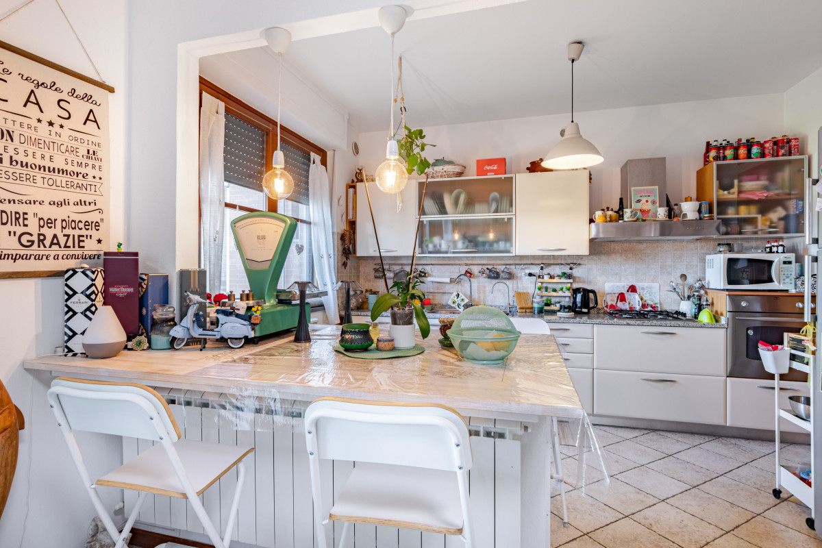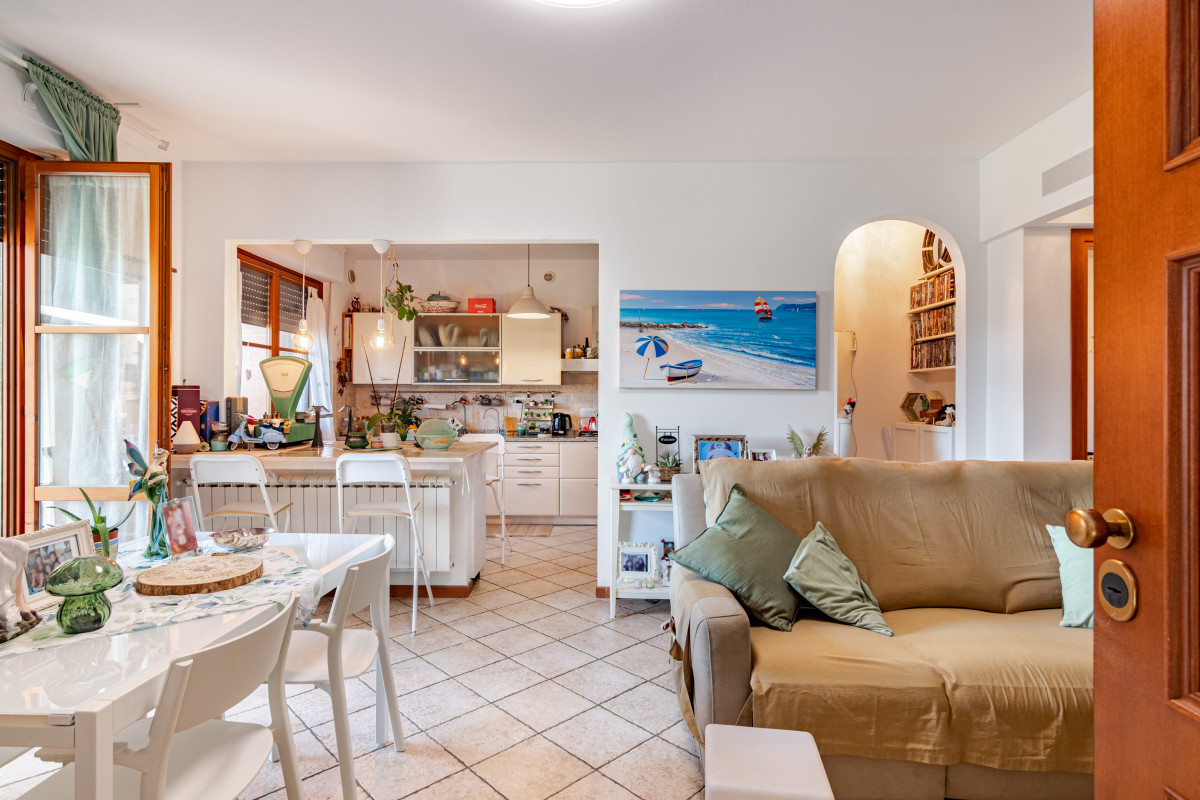 Si presenta ben distribuito, ideale sia per famiglie che per giovani coppie, ed è composto da soggiorno, cucina abitabile, una camera matrimoniale, una camera media, bagno nuovo e due generosi terrazzi.