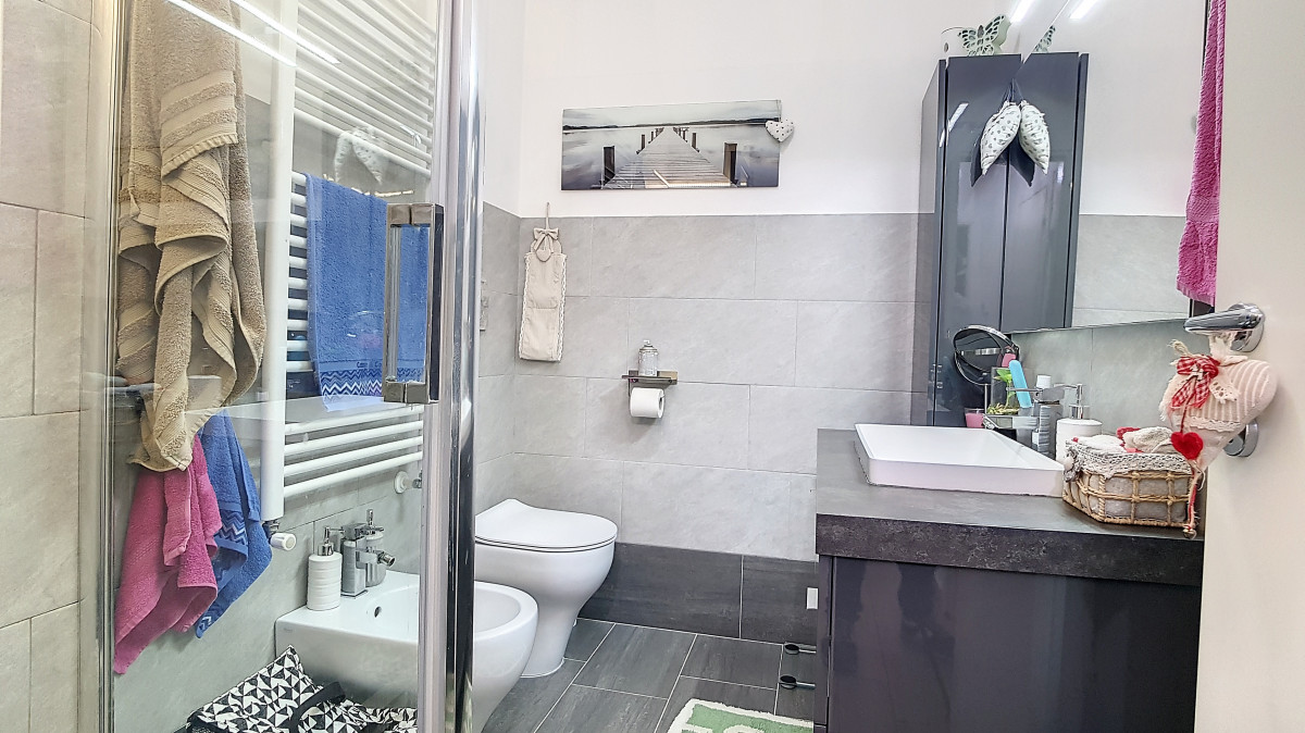 L'immobile oggetto di una recente ristrutturazione ad inizio 2017 è stato valorizzato riorganizzando gli originali spazi del trilocale ed ottenendo un unico ampio soggiorno dalla fusione di sala e cameretta in base alla personalizzazione voluta dall'attuale proprietario. Impianto di condizionamento presente.