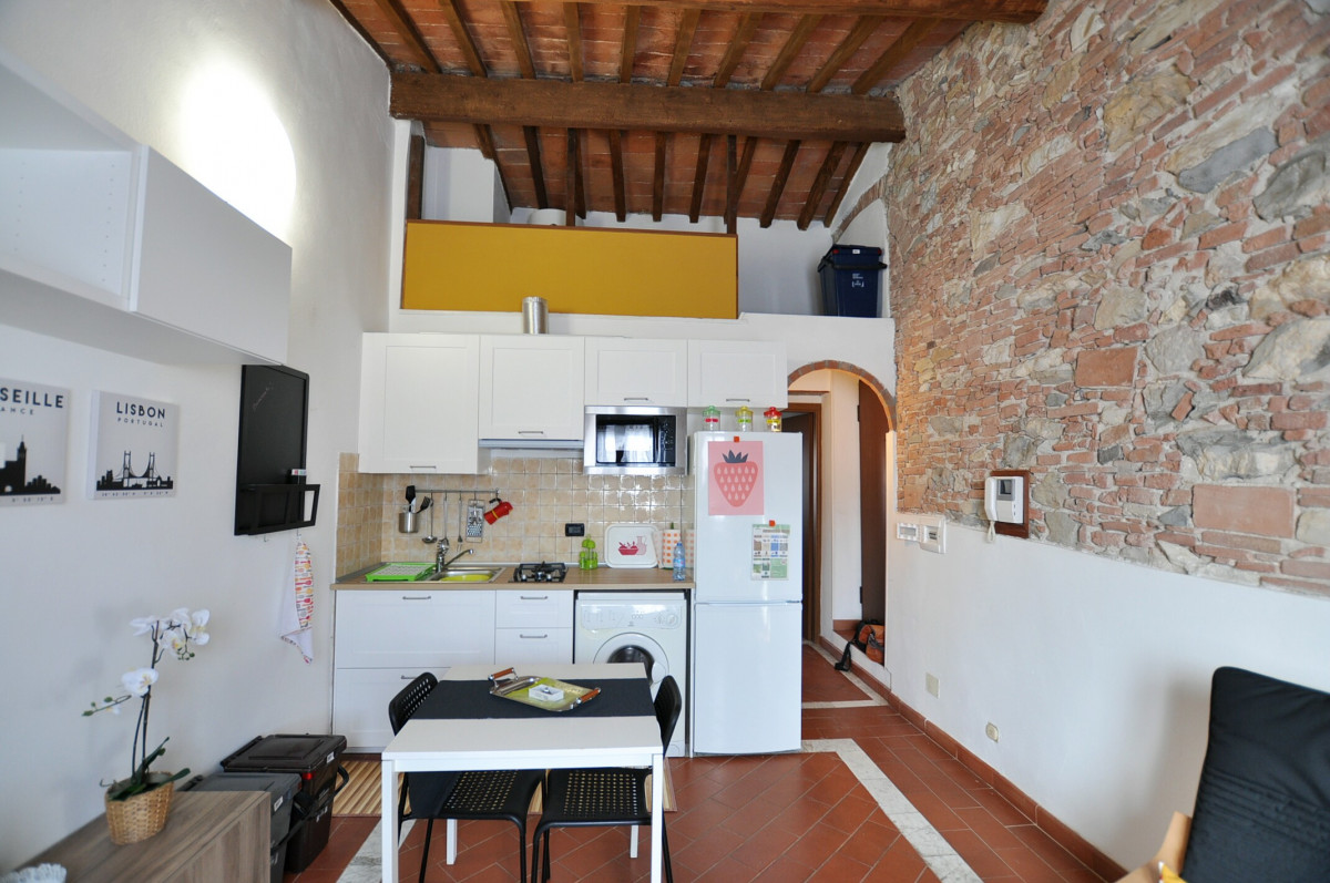 AD.ZE GUERRAZZI - NOSTRA ESCLUSIVA - in piccolo condominio interamente riqualificato nei primi anni 2000, a due passi dal centro storico, disponibile al secondo piano graziosissimo bilocale dalle ottime e ben curate rifiniture, composto da ingresso in disimpegno, ampio soggiorno con cucina a vista e soppalco ad uso ripostiglio, piccolo disimpegno notte con camera matrimoniale e bagno con doccia. L'appartamento riporta caratteristiche in stile toscano che gli regalano un'atmosfera accogliente ed intima, quali pavimentazione in cotto, parete con pietre a vista, soffitti con travi e mezzane, infissi con vetrocamera, porta blindata, dispositivi di riscaldamento e condizionamento, videocitofono. Viene venduto attualmente locato con ottima rendita mensile e dunque completo dell'arredo presente. Vista la posizione di indubbia attrazione anche turistica questo immobile risulta perfetto per chi cerca un ottimo investimento con rendita garantita ma, visto la predisposizione degli spazi risulta un oggetto validissimo anche per uso ed abitazione principale. Classe Ener. G. RIF. DL31