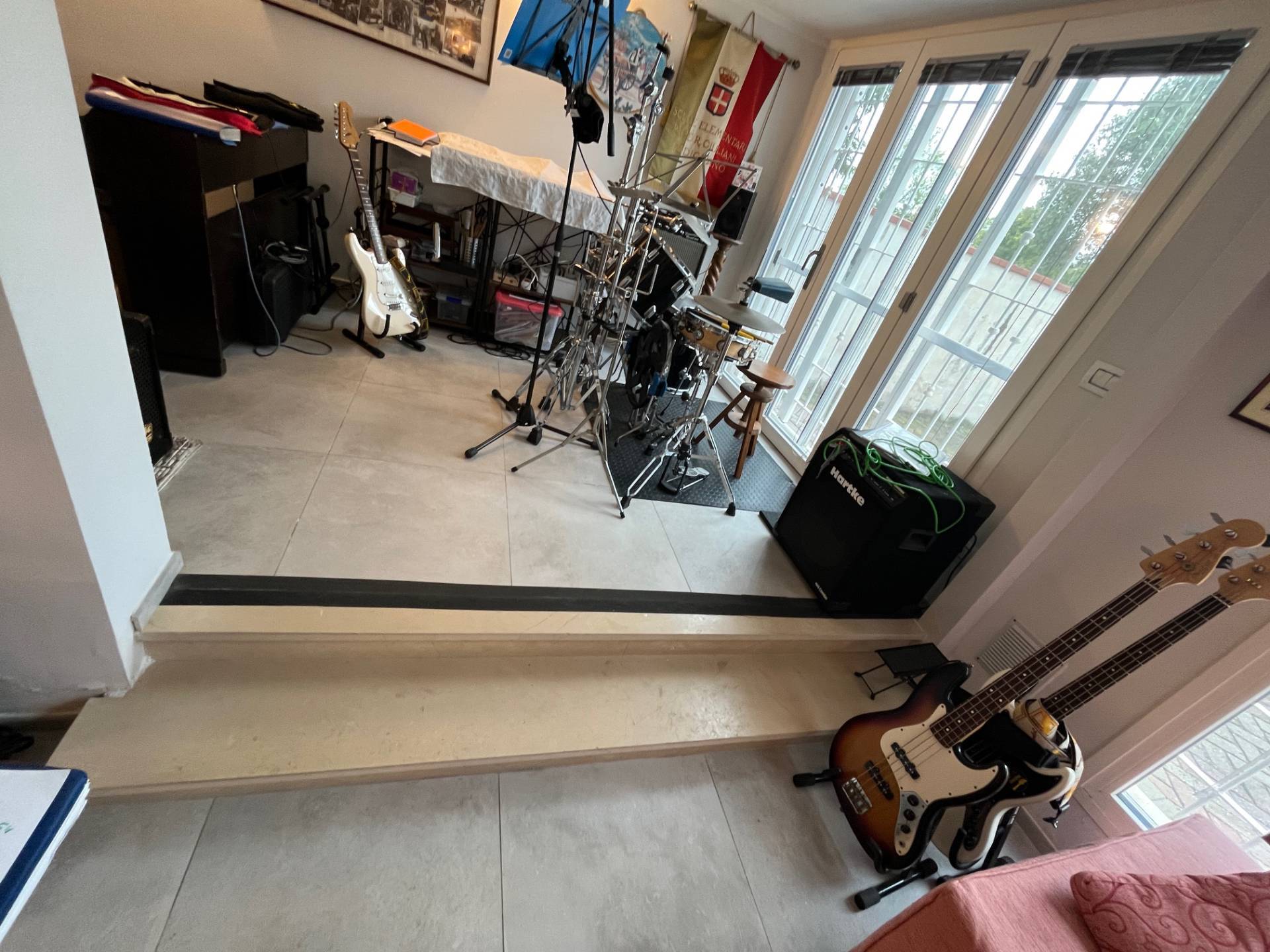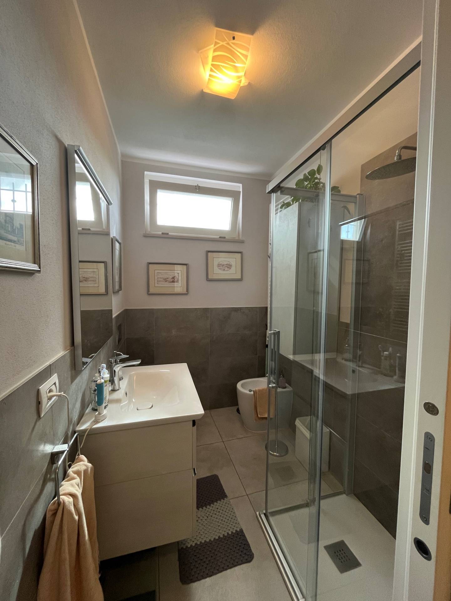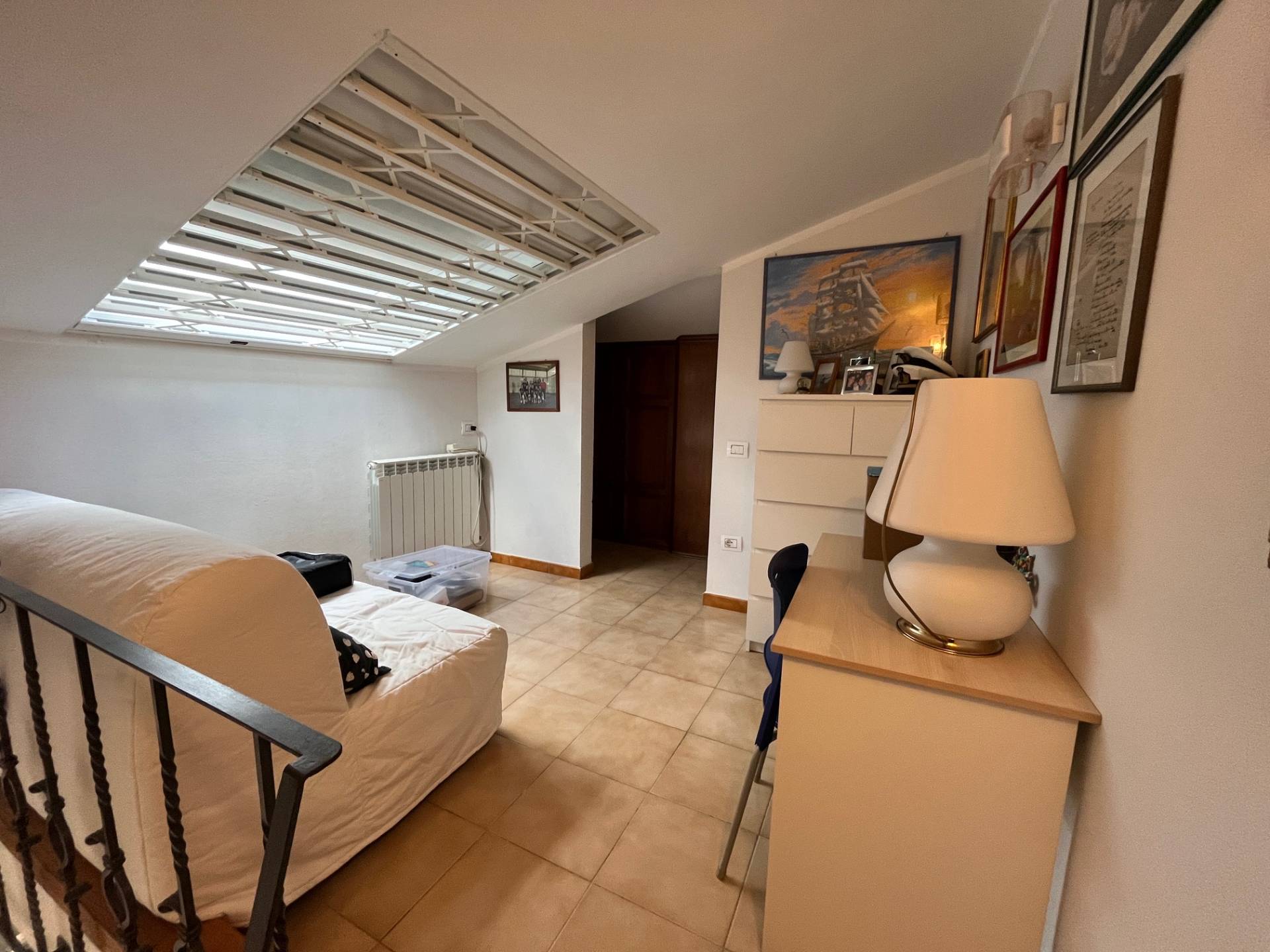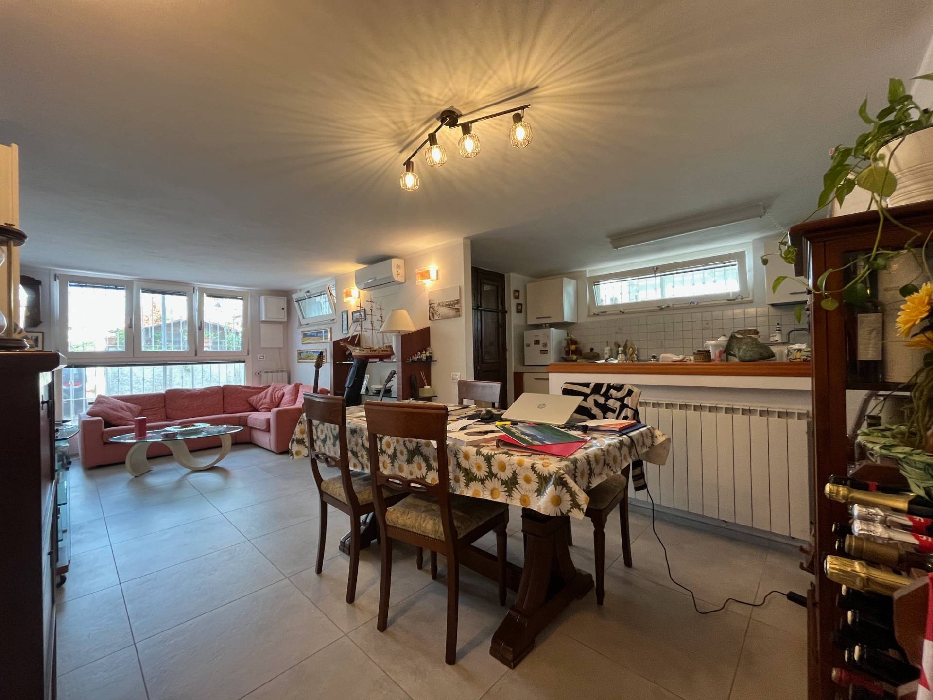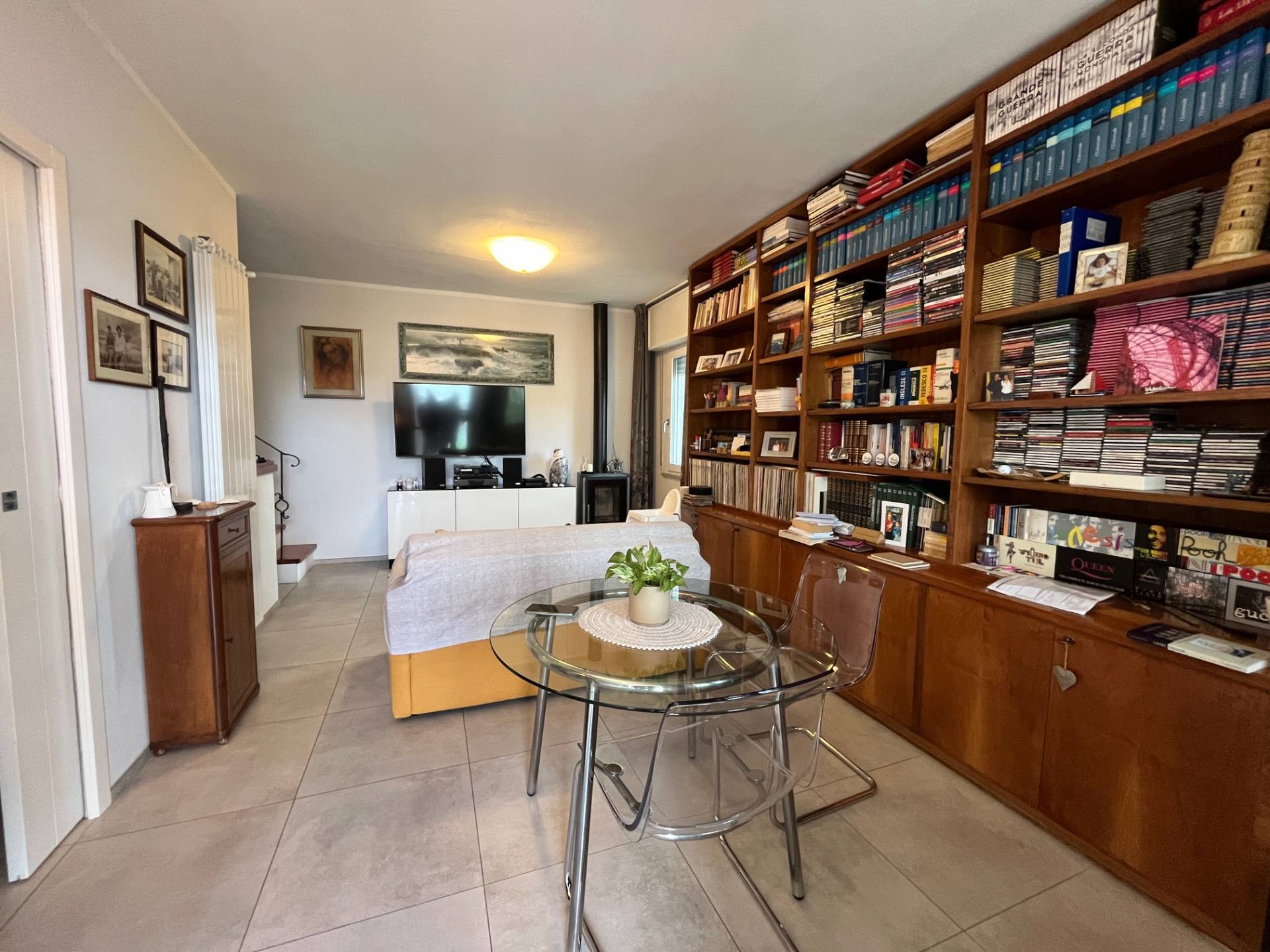 ESCLUSIVA NODICA: Casa singola libera su tutti e quattro i lati, con giardino esclusivo sviluppato solo su un lato posto nella parte della facciata principale. L'abitazione si trova al primo piano con accesso da scala esterna, ed è composta da ingresso in ampio soggiorno con angolo cottura separato, ripostiglio/dispensa, disimpegno, camera matrimoniale e bagno con finestra. Dalla zona giorno tramite scala in ferro e legno si accede al locale sottotetto con ampio lucernario, attualmente utilizzato come zona studio e vani ripostiglio/guardaroba. Al piano terra locali di sgombero h 255 con garage comunicante, utili come taverna o ulteriore zona living essendo collegati tramite scala interna con l'abitazione posta al piano primo. Gli ambienti sono stati ristrutturati nel 2018 con materiali di qualità. Il giardino esterno in parte pavimentato ed in parte a verde si sviluppa interamente nella zona frontale ( nord) prospiciente i locali di sgombero, con i quali è ben collegato ed è dotato di bella pergola, l'immobile confina inoltre nella parte adiacente il garage con corte comune, mentre i restanti due lati sono confinanti con resede di altre proprietà.