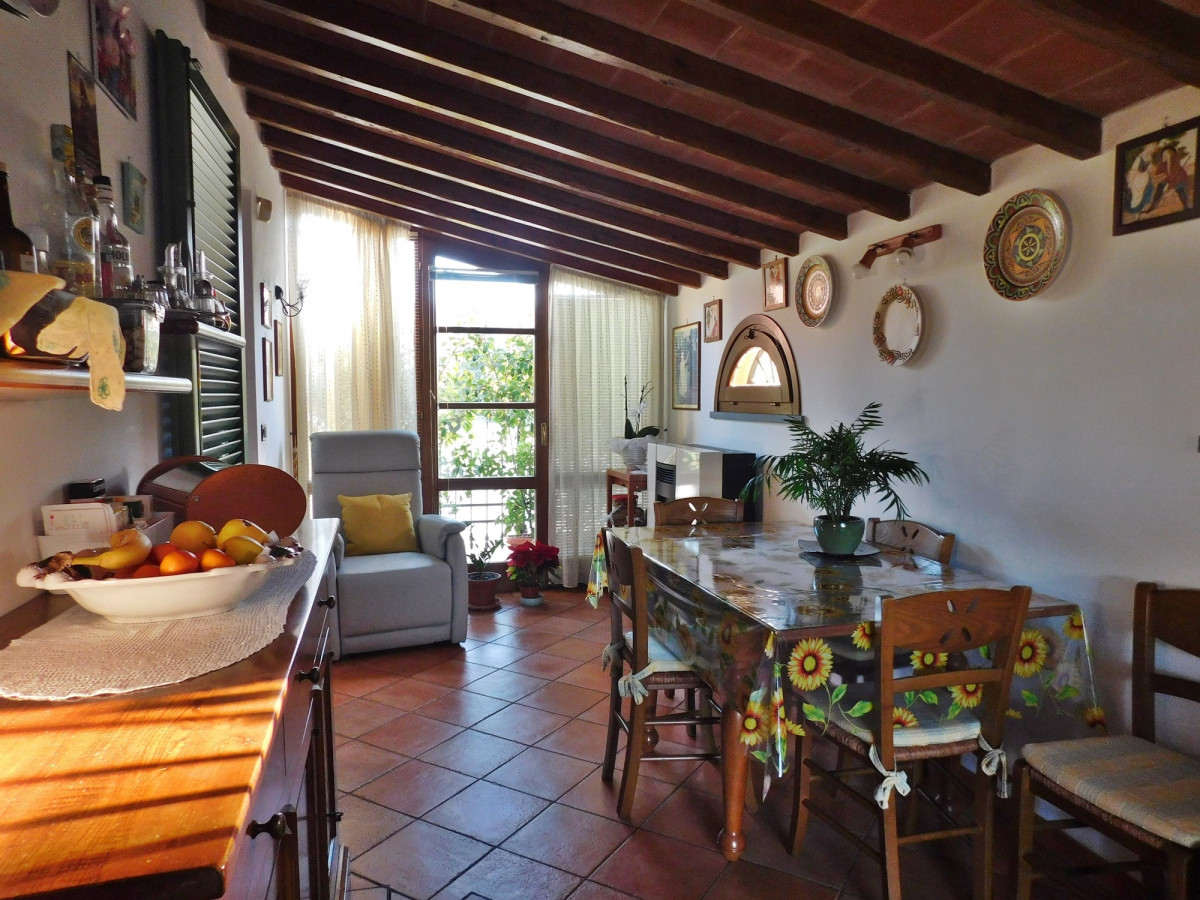 Costruzione del 2004 in stile rustico toscano, sviluppata in gran parte al piano terra oltre mansarda e taverna. Dal giardino si accede al soggiorno con angolo cottura, sala da pranzo, disimpegno notte con camera matrimoniale cameretta e bagno, una gradevole scala a vista conduce alla camera in mansarda; al piano seminterrato troviamo una comoda e funzionale taverna con cucina, caminetto, bagni e locali pluriuso. Il delizioso giardino ospita un forno in muratura e una comoda casina in legno.