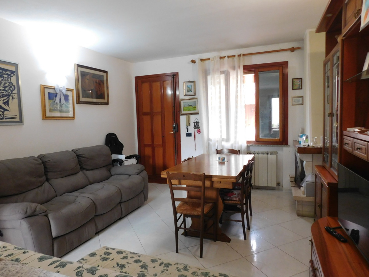 Villetta degli anni '90 libera su tre lati con zona giorno open-space, accesso al garage adibito a zona conviviale, bagno con doccia e finestra, al piano ammezzato camera media e bagno con finestra e vasca, al primo piano 2 ampie camere con balcone.