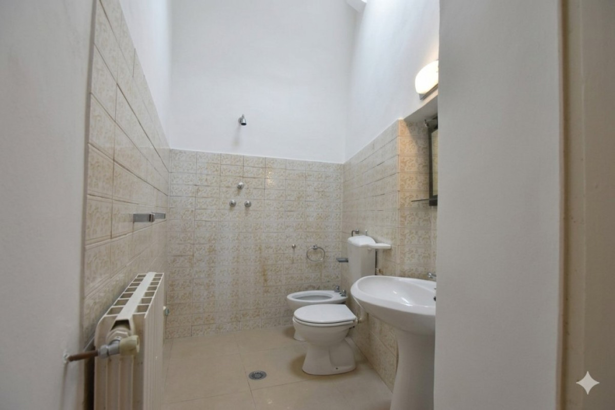 Attraverso una corte a comune si ha accesso all'immobile che prevalentemente si sviluppa al piano primo. L'abitazione gode di un'ampia superficie divisa in tre grandi ambienti al piano primo ed un altro grande ambiente al piano terra, eventualmente da collegare con una scala interna all'appartamento situato al piano primo. Infine troviamo un balcone, un ripostiglio e un bagno.
