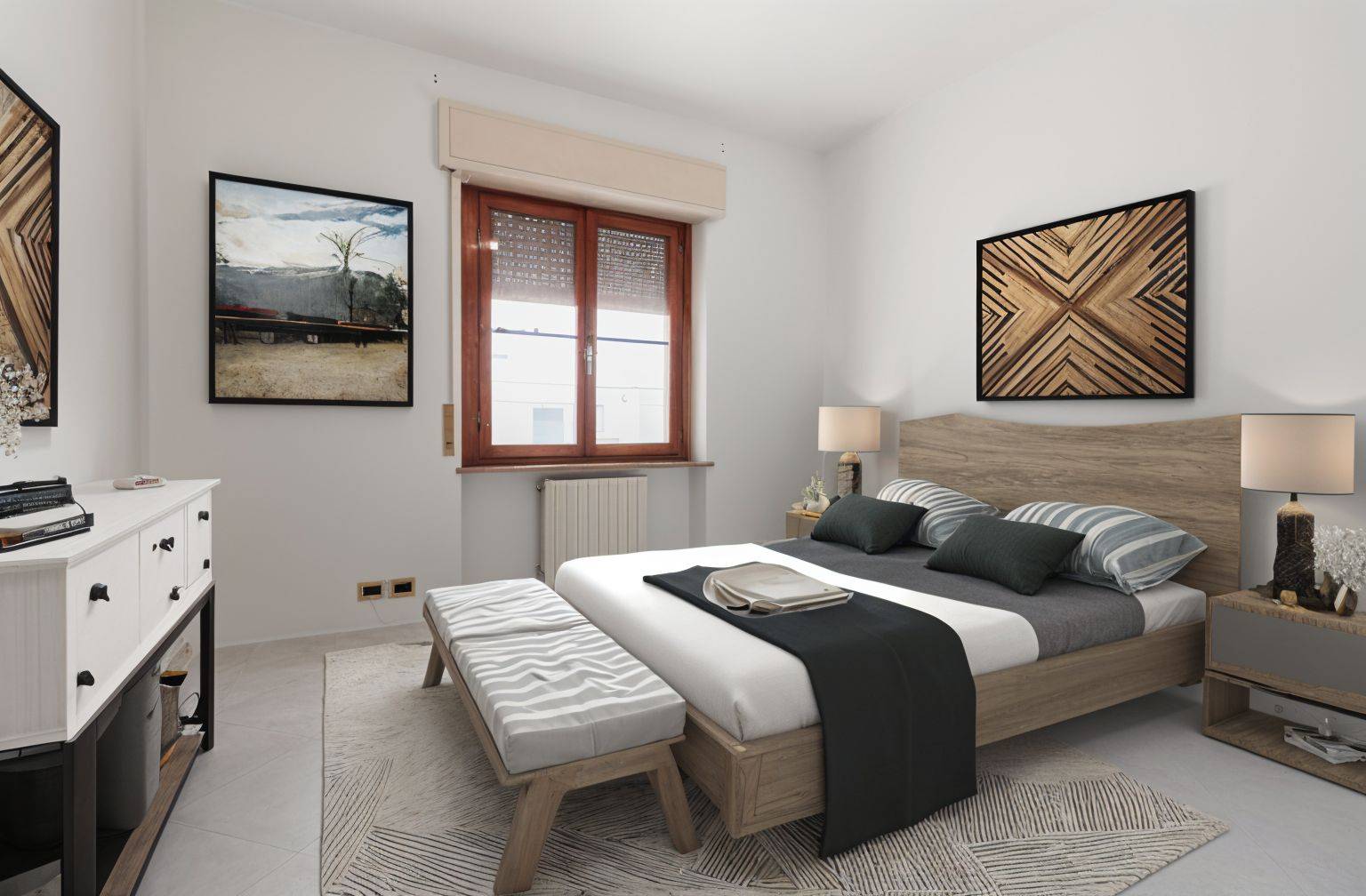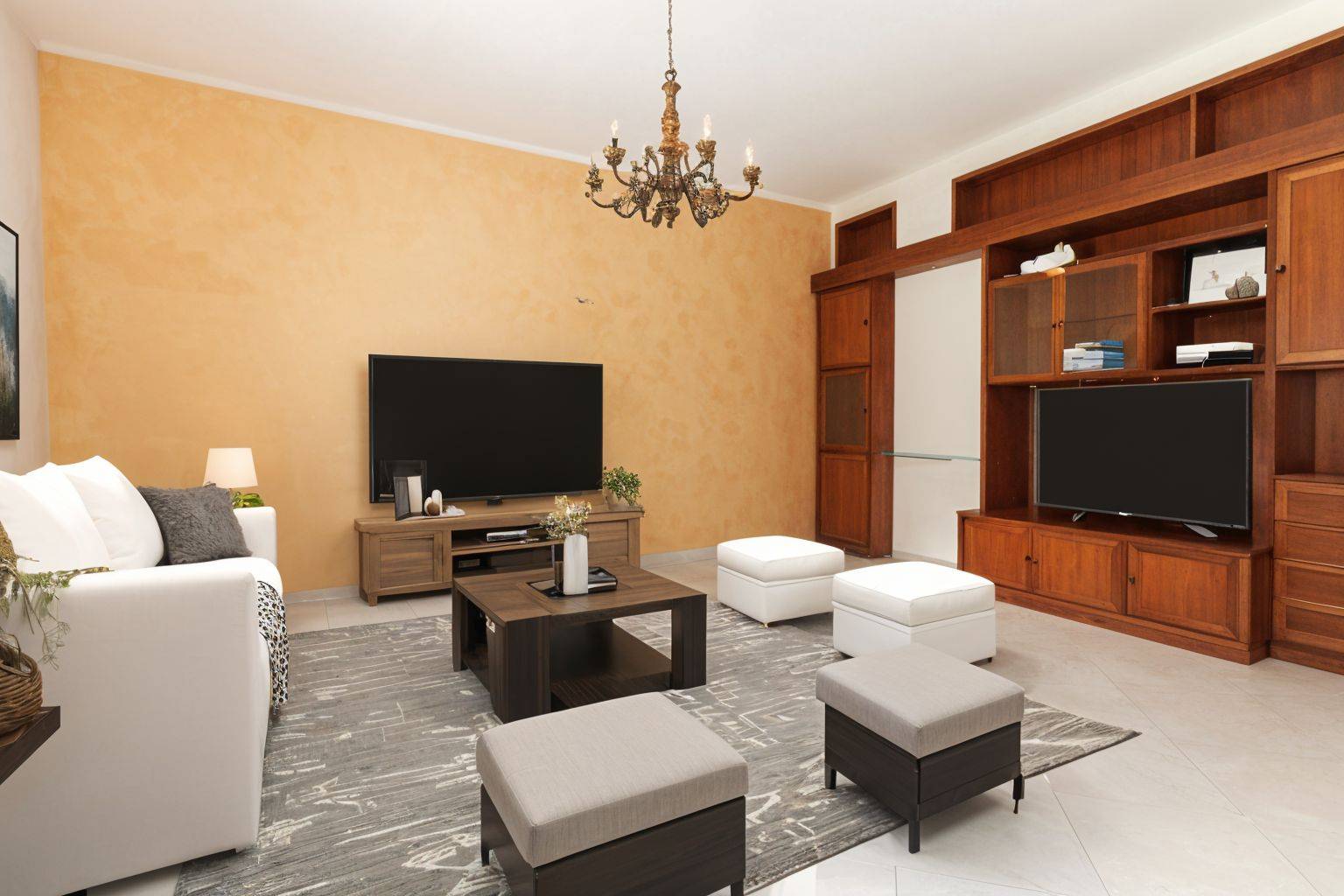L'appartamento è posto al piano rialzato ed è composto da ampio e luminoso soggiorno, cucina abitabile con accesso al balcone e disimpegno che ci accompagna alla zona notte con due ampie camere matrimoniali, una cameretta e un ampio bagno finestrato.