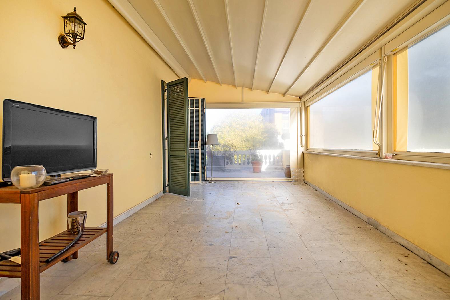 L' unità immobiliare si compone al piano terra da due vani abitabili oltre ad un bagno, con accesso al giardino su tre lati e zona posti auto; tramite scala interna si raggiunge il piano primo principale, composto da un ampio salone, grande cucina abitabile , due camere ed un bagno; dal soggiorno si accede ad un ampia terrazza abitabile e dotata di infissi apribili ideale sia per cene estive che invernali (riscaldata). Dal soggiorno si accede tramite scala interna al piano mansarda (circa 130 mq) suddivisa in ampia zona soggiorno-studio-palestra, camera con altro bagno.