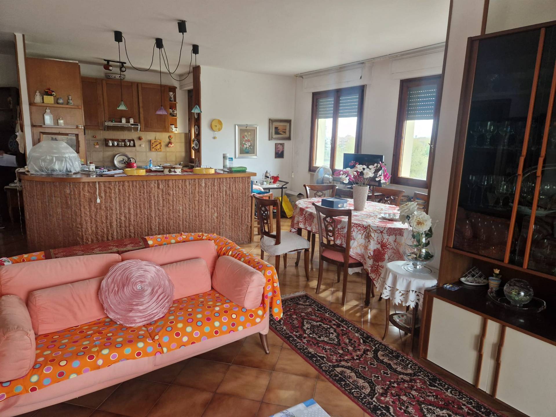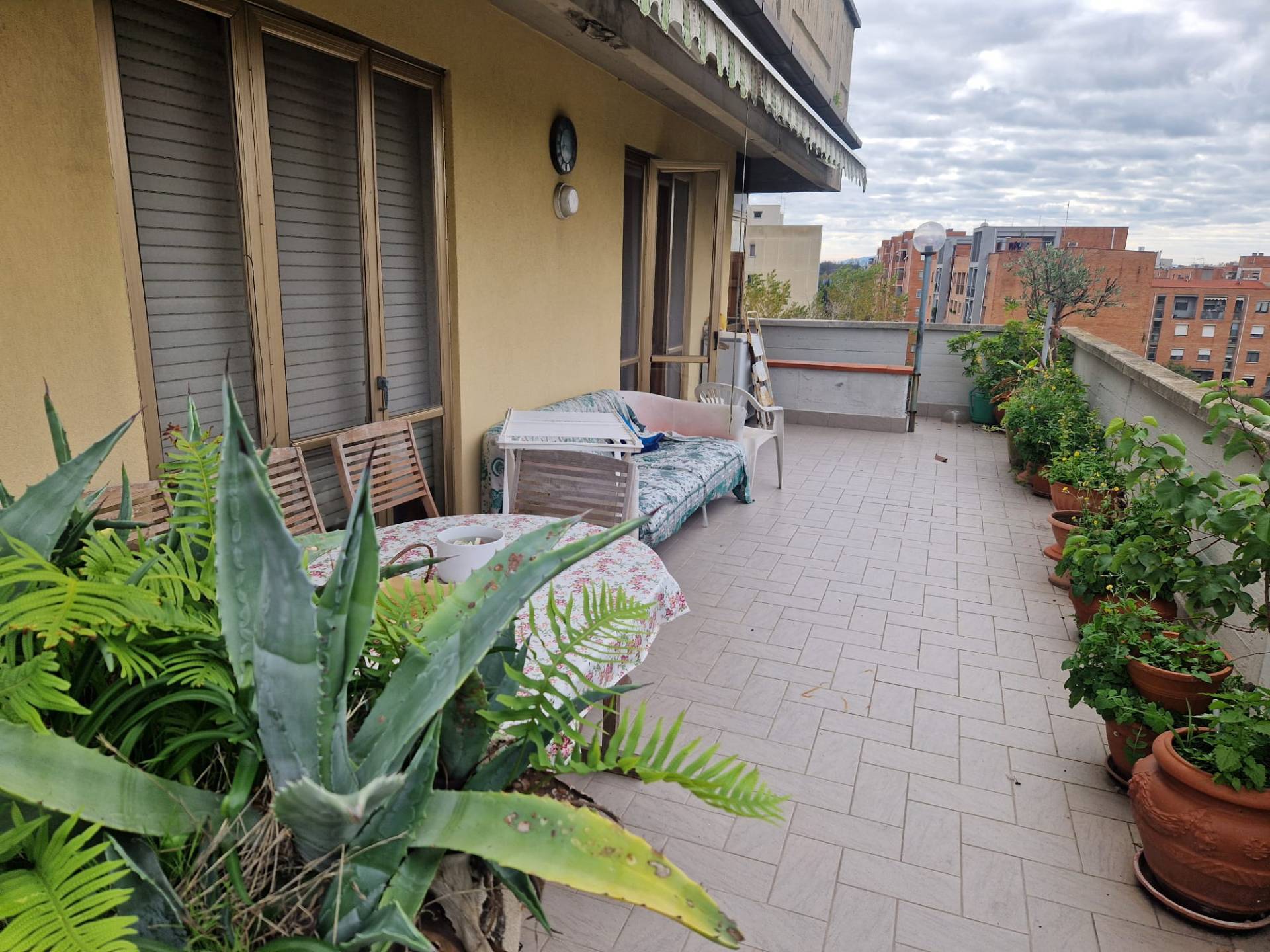 A due passi dal Polo del CNR e dalla Coop di Pisanova e più precisamente in Via Carnelutti, proponiamo appartamento semiattico posto al 5° piano con ascensore; ingresso tradizionale, salone con zona pranzo e angolo cottura open space ma volendo facilmente ripristinabile la cucina chiusa, camera matrimoniale, studio con veranda, doppi servizi, grande terrazza panoramica con due ripostigli con accesso dal soggiorno e dalla camera matrimoniale. Al piano seminterrato garage doppio. Le rifiniture seppur ben tenute sono dell'epoca di costruzione.