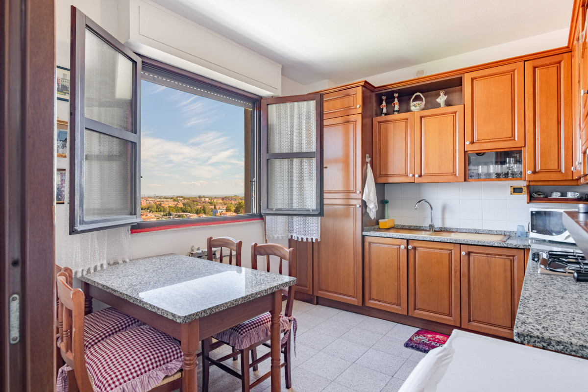 F.217 - ESCLUSIVA - LARGO ESPERANTO, COOP PISANOVA - In zona comoda vicino a tutti i servizi proponiamo luminoso appartamento posto al nono ed ultimo piano. Composto da: ingresso in ampio soggiorno con accesso ad un comodo balcone, cucina abitabile, ripostiglio, tre camere di cui due matrimoniali ed una media, e doppi servizi entrambi finestrati. Completano l'offerta un ampio garage carrabile, e due cantine al piano sottotetto. Il tutto si presenta in buone condizioni generali. Classe energetica: F, Ipe 213,84. EURO 279.000