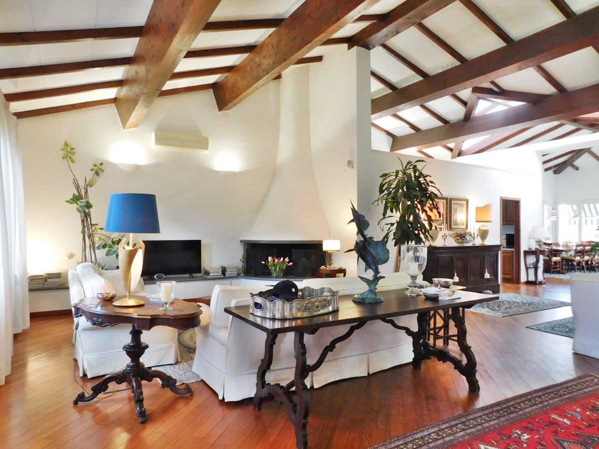 L’ingresso avviene nel grande parco che circonda la villa e dove trovano comodamente spazio numerose autovetture, una bella scala conduce all’ingresso principale dell’abitazione al 1° piano dove rimarrete incantati dal maestoso salone di ben 110 mq, inondato di luce e dove trova la giusta collocazione un camino di design, un’ampia zona divani illuminata anche da un gioco di luce naturale proveniente dal lucernario a tetto e una meravigliosa zona pranzo finestrata su tutto il perimetro che offrendo una impareggiabile vista sul giardino.