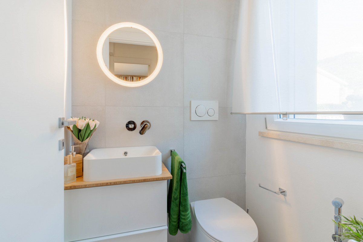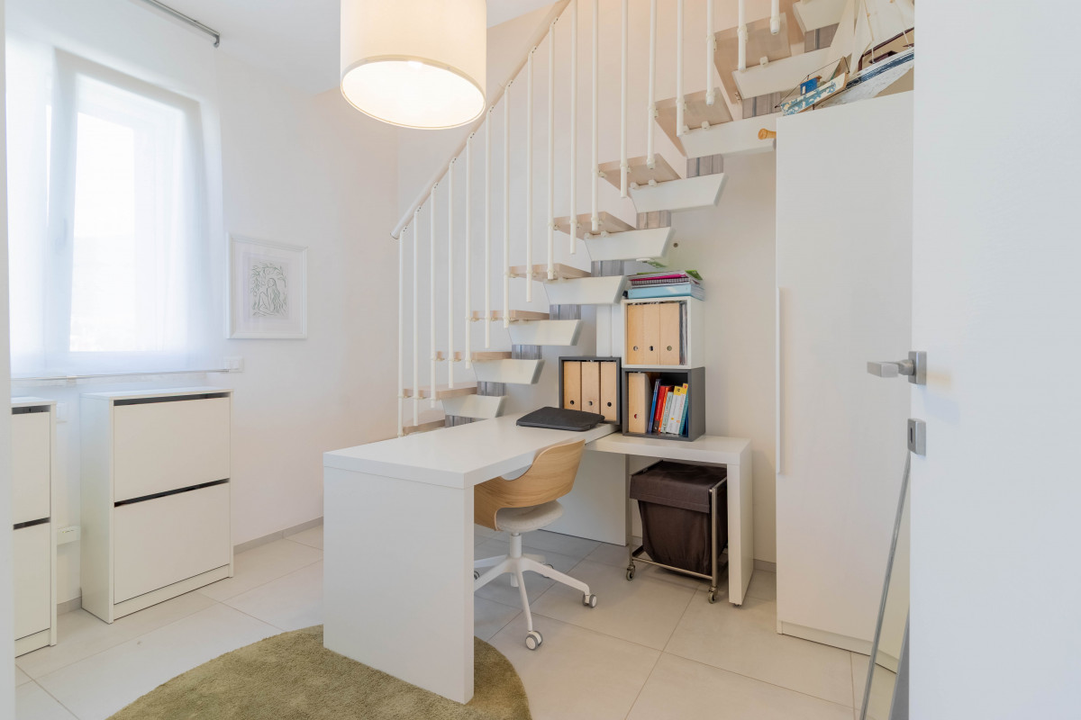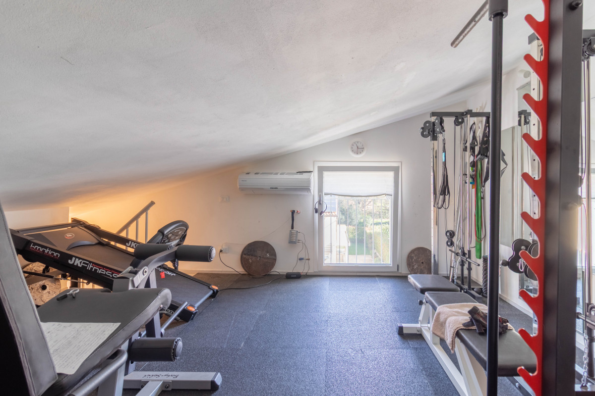 L’accesso alla villetta avviene tramite un CURATO GIARDINO ANGOLARE in gran parte pavimentato, rendendolo più fruibile anche nelle stagioni più piovose, ottimamente attrezzato con casina di legno e gazebo. La villetta internamente è così composta: ingresso in luminoso soggiorno-pranzo dove a prima vista percepiamo la piacevole cura dei dettagli; a seguire troviamo il cucinotto, antibagno e bagno. Al primo piano, una camera matrimoniale con terrazzo che affaccia sui monti circostanti, bagno con doccia, cameretta/studio dalla quale, mediante scala in legno, si accede ad una COMODA MANSARDA, adibita a piccola palestra, che all’occorrenza si presta per una terza cameretta.