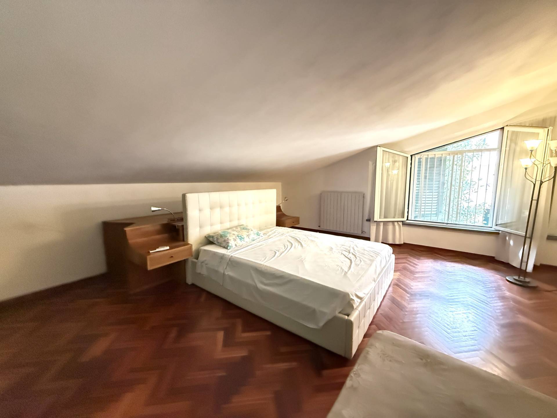 E' composta al piano rialzato da ingresso, soggiorno, cucina, tinello, una camera matrimoniale ed il bagno. Al piano superiore troviamo una bella mansarda/sottotetto attualmente suddivisa in grande camera, cameretta/studio e bagno/w.c.
