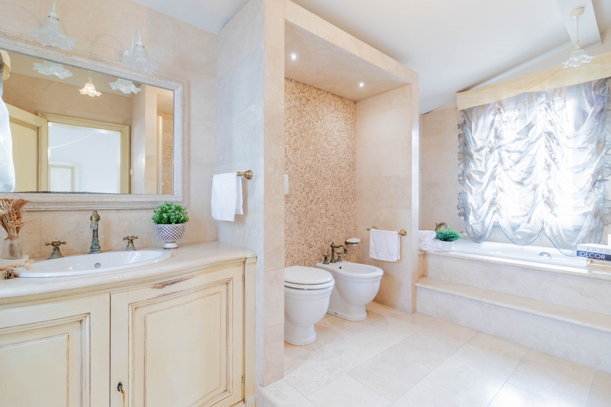 Si può infatti realizzare una vera camera padronale con bagno esclusivo, impreziosito da doccia e vasca, creando una suite privata dal forte impatto emozionale. La seconda camera, ampia e regolare, si presta perfettamente ad accogliere una cabina armadi dedicata o uno spazio studio riservato. Il secondo bagno rimane funzionale e strategicamente posizionato a servizio della zona giorno.